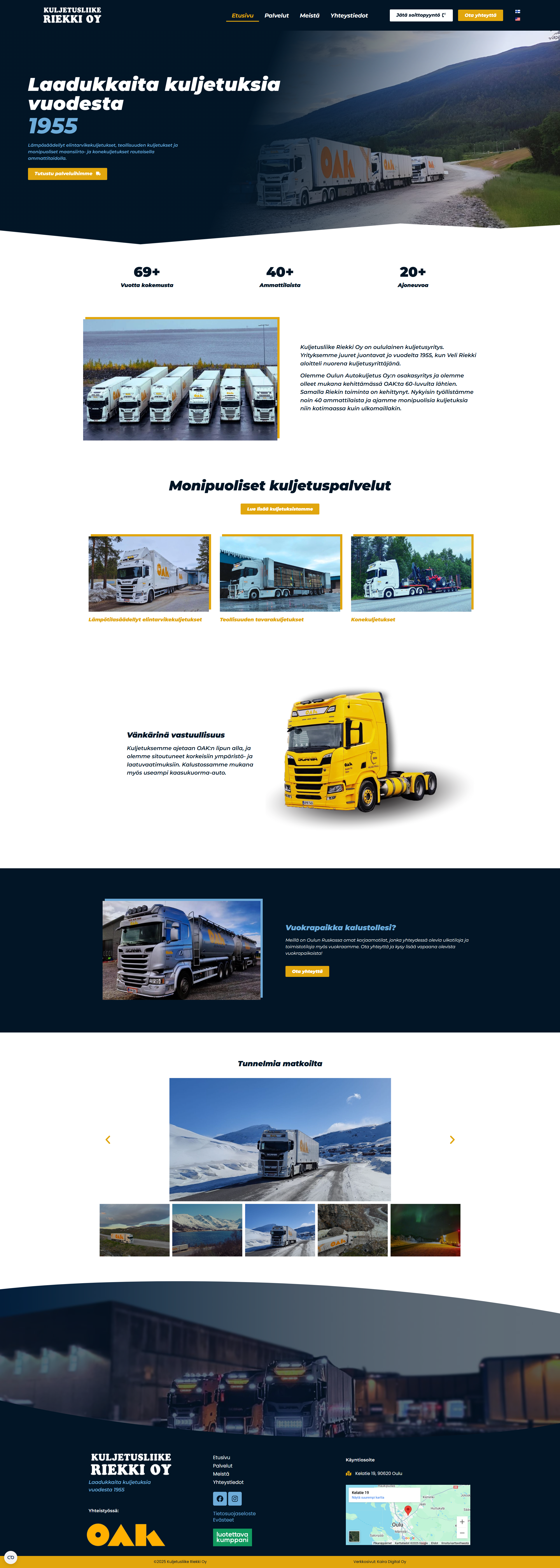 Kuljetusliike Riekki Oy on toiminut alalla jo vuodesta 1955, mutta verkkonäkyvyys oli jäänyt taka-alalle, eikä yrityksellä ollut kotisivuja hetkeen. Nykyajan asiakkaat etsivät palveluita ensisijaisesti verkosta, joten oli aika tuoda Riekki Oy takaisin digiaikaan.
