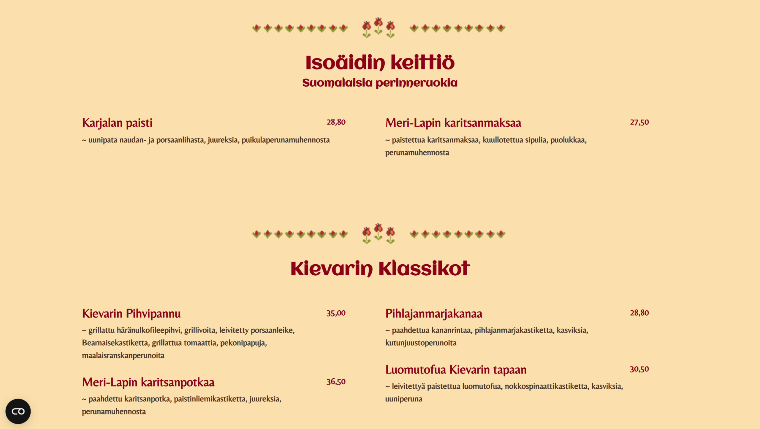 Hyvä ruoka ansaitsee arvoisensa esittelyn – ja juuri siksi Sokeri-Jussin Kievarin verkkosivut uudistettiin vastaamaan ravintolan ainutlaatuista tunnelmaa. Uusi visuaalinen ilme tuo esiin suomalaisen perinneruoan lämpimän ja kutsuvan maailman, samalla kun selkeä rakenne helpottaa asiakkaita löytämään etsimänsä.