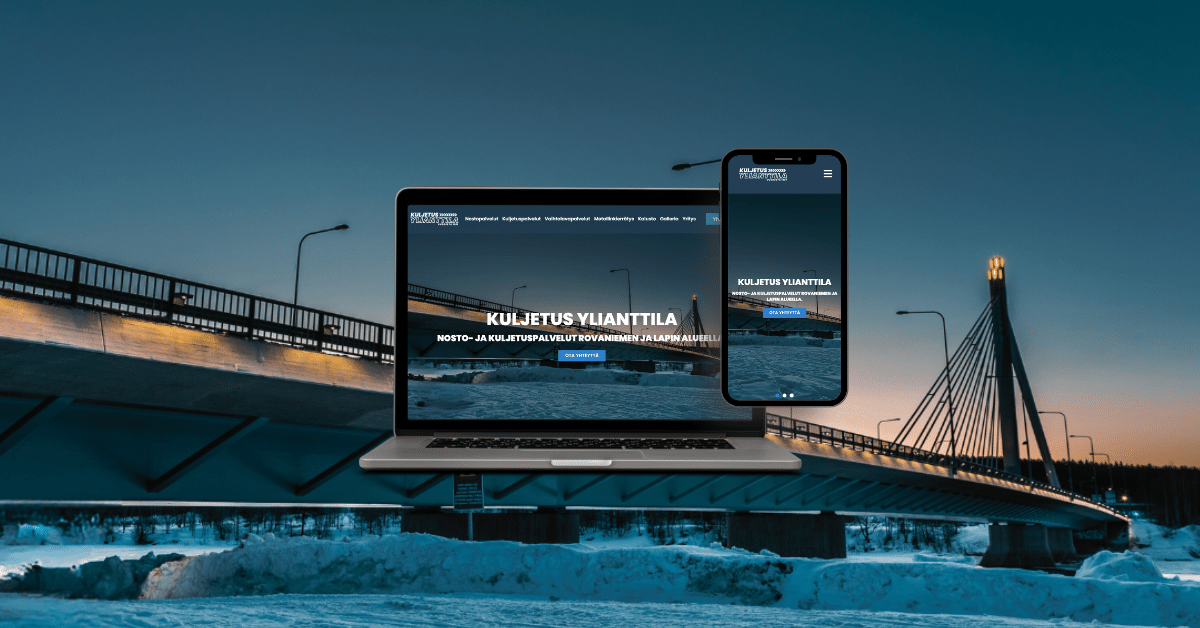 Kuljetus Ylianttila otti meihin yhteyttä ja kertoi tarvitsevansa uudet nykyaikaiset verkkosivut, jotka toimisivat kaikilla laitteilla oikein. Tarvekartoitusta tehdessä kävi ilme, että myös yritysilme ja logo kaipaavat uudistusta. Yritys on vuodesta 1961 toiminut kuljetusliike, joka tarjoaa nosto- ja kuljetuspalveluita Rovaniemellä.